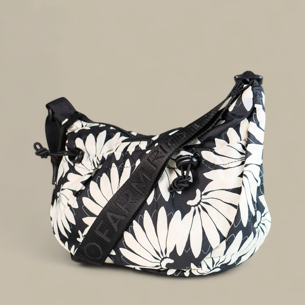 Alça transversal larga e ajustável, com logo FARM Rio para toque esportivo.