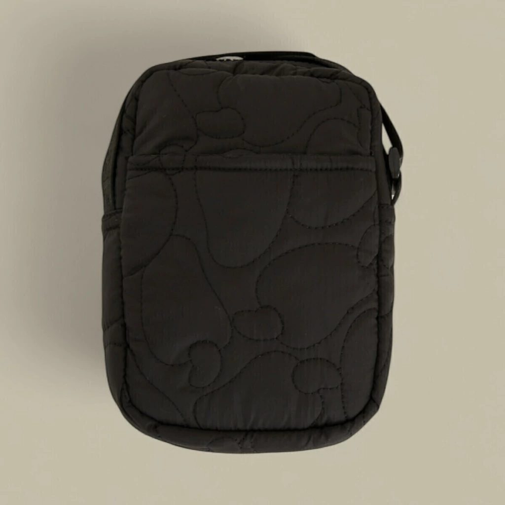 - Design puffer discreto: A superfície em matelassê com formas geométricas sutis adiciona uma textura elegante e um visual contemporâneo ao clássico preto, mantendo a versatilidade.