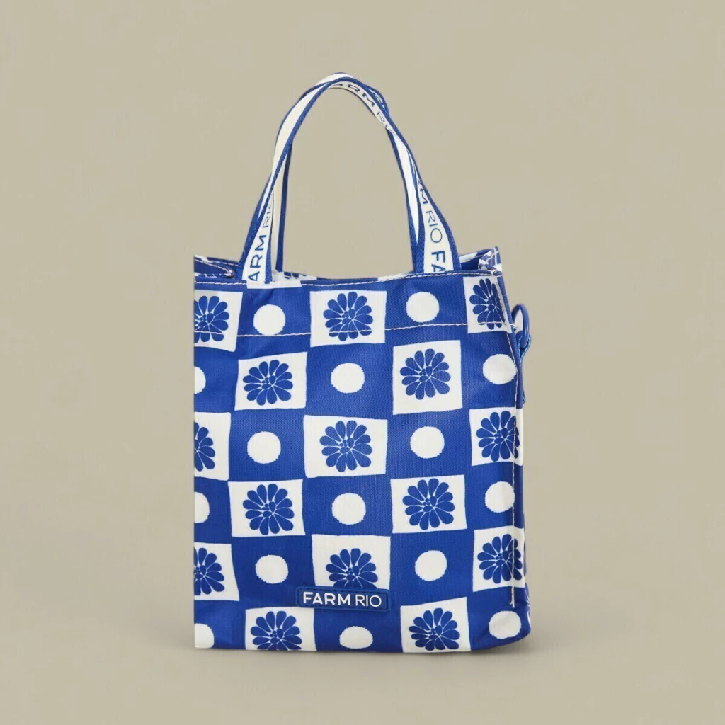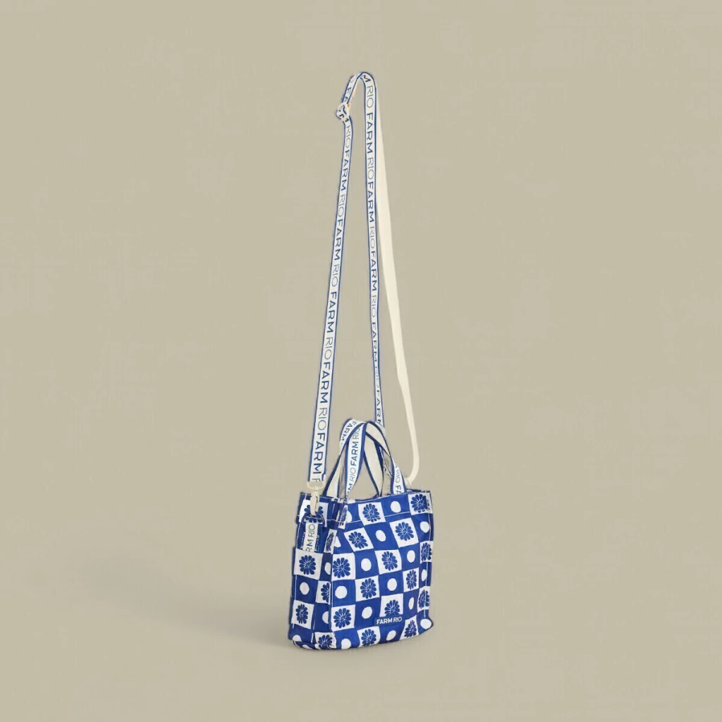 Bolsa Mimo FARM Palermo Quadriculado Azul e Branca – Verão 2025