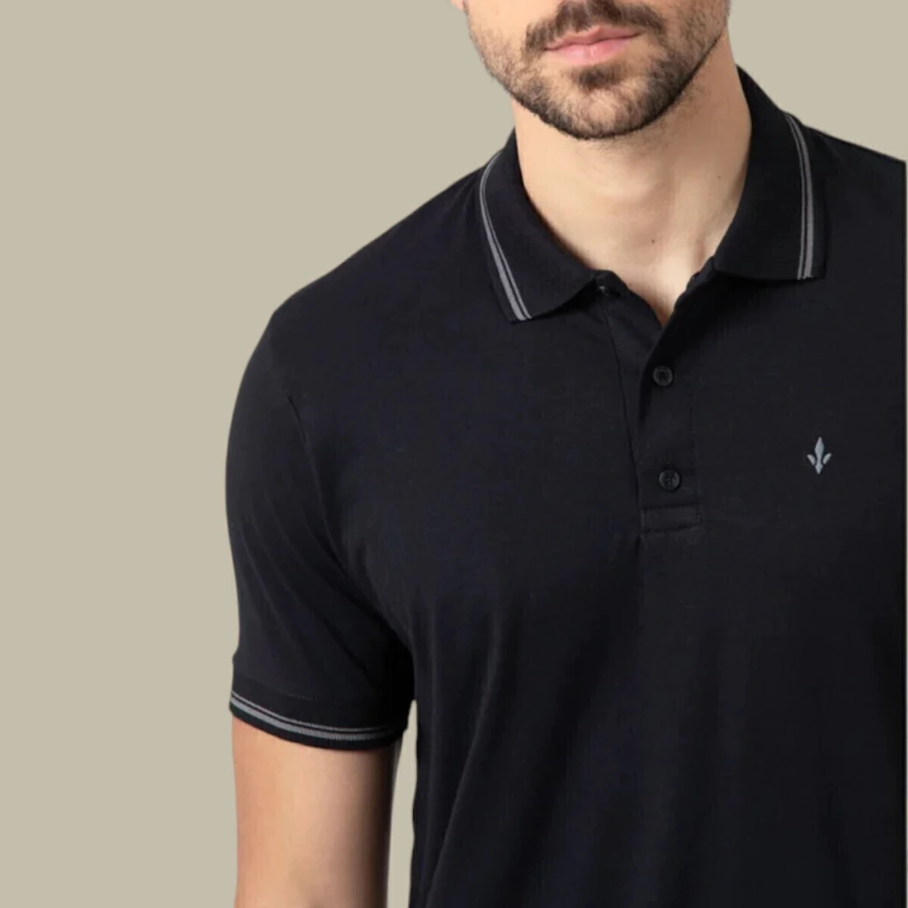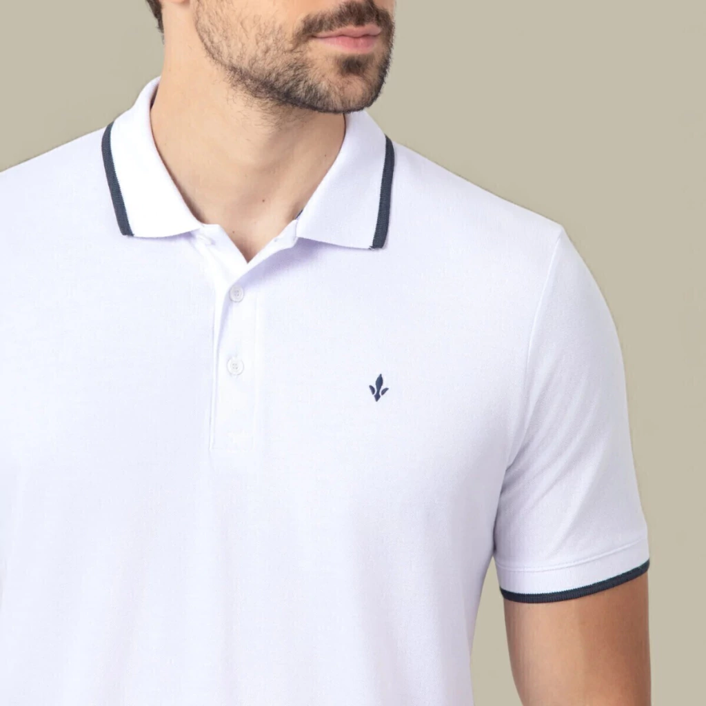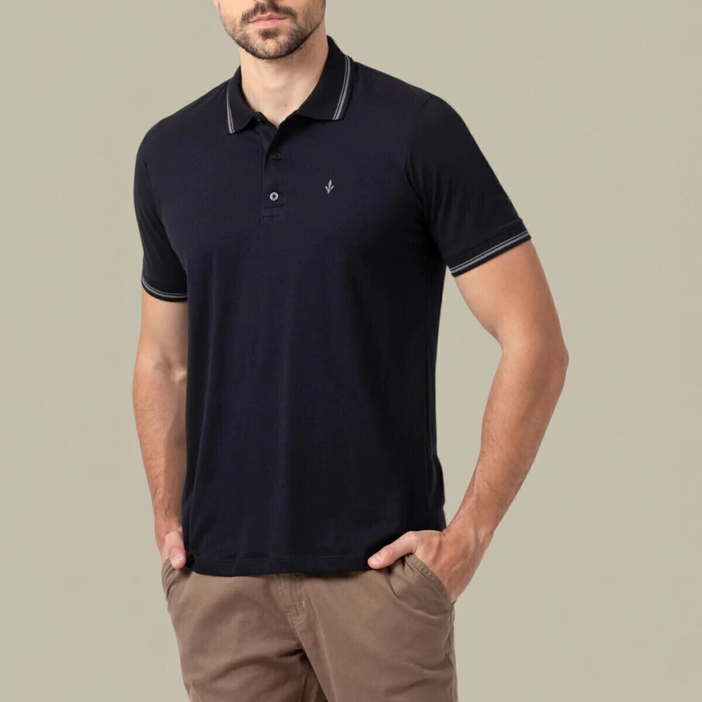 Adquira agora a sua Camisa Polo DLZ com Detalhe na Manga e na Gola e experimente o equilíbrio perfeito entre elegância e casualidade.