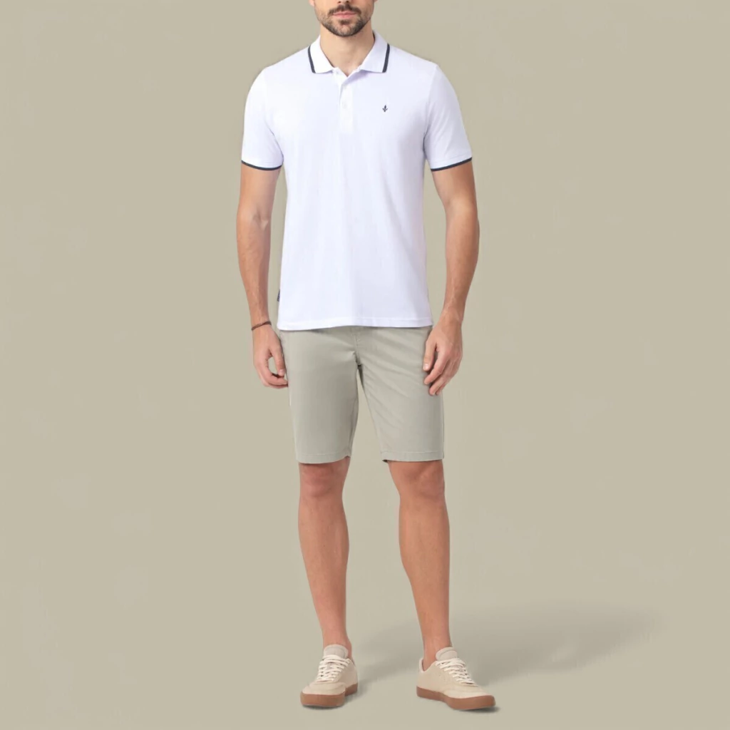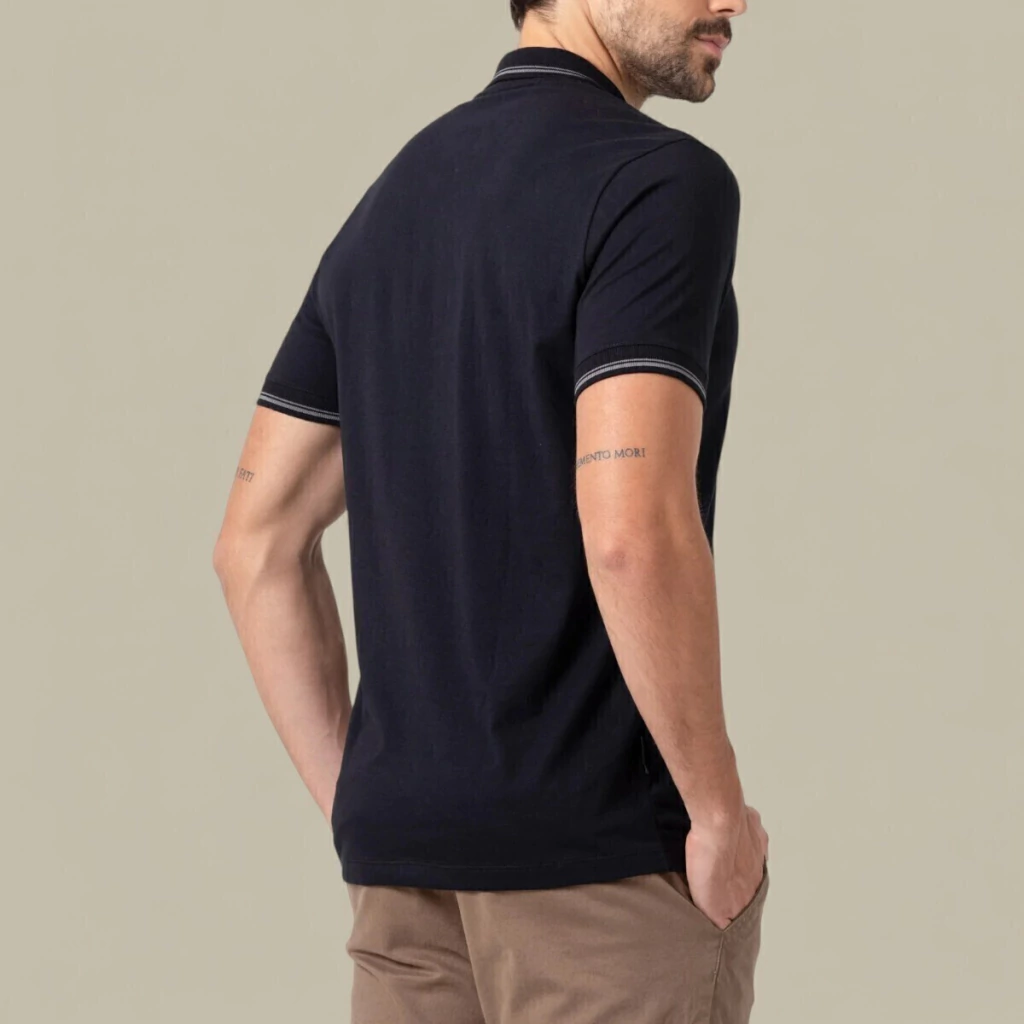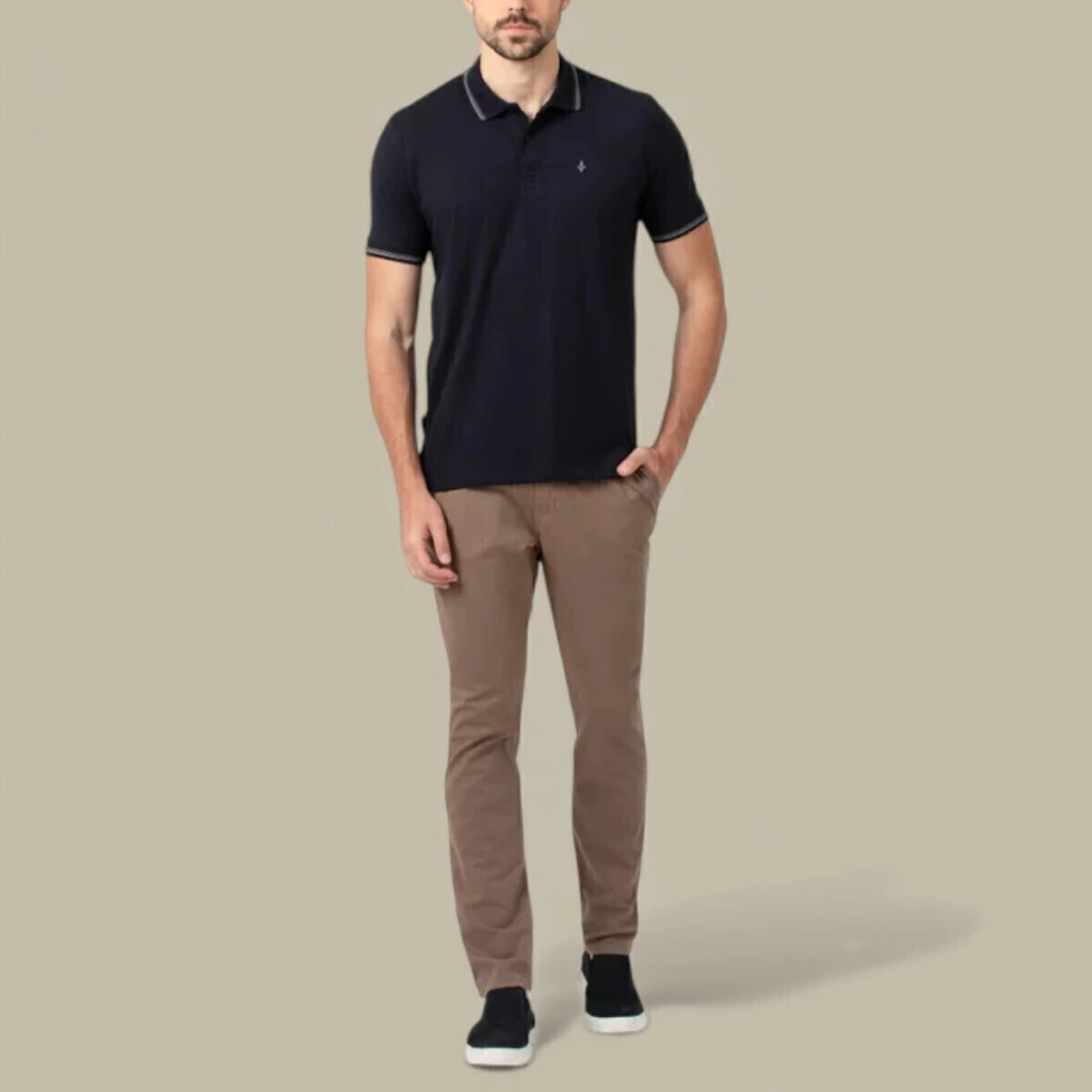 Adquira agora a sua Camisa Polo DLZ com Detalhe na Manga e na Gola e experimente o equilíbrio perfeito entre elegância e casualidade.