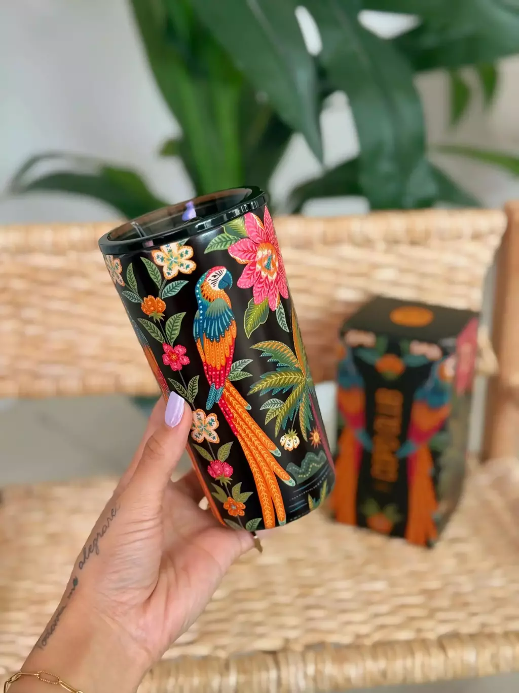 Um brinde ao tropicalismo vibrante! O Copo FARM Glub 500ml Samba das Araras chega com uma explosão de cores sobre fundo preto, trazendo o contraste perfeito entre o elegante e o descontraído. Ideal para quem busca praticidade com charme no dia a dia.