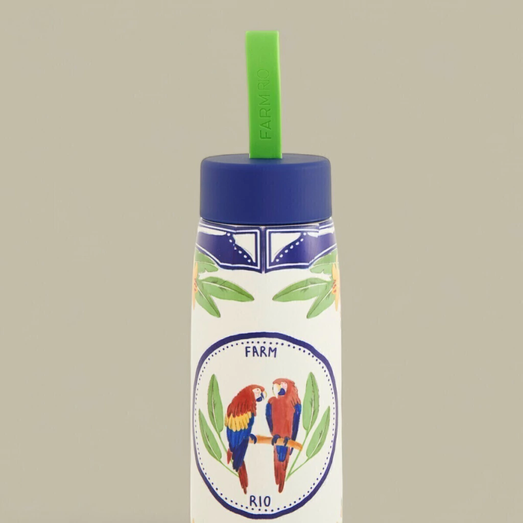 Inspirada no charme do verão brasileiro, a Garrafa FARM Que Sede 500ml Destino Tropical traz frescor e energia para seus dias. Com estampa vibrante de araras e elementos tropicais, ela traduz o espírito leve e colorido da estação em um acessório funcional e cheio de estilo.