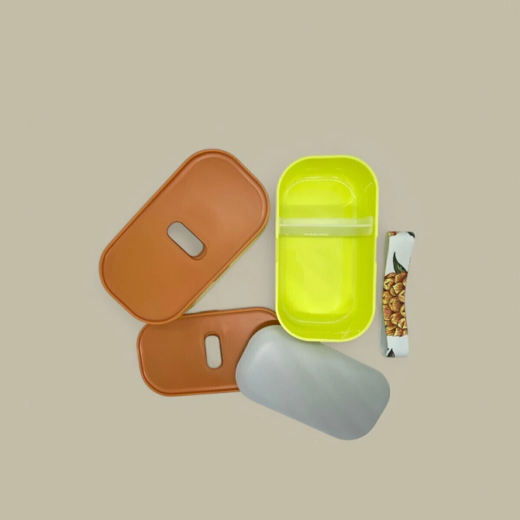 As marmitas, com formato retangular e divisórias removíveis, são ideais para armazenar diferentes tipos de alimentos de forma organizada. Seu acabamento fosco e fechamento por tampa hermética garantem a segurança dos alimentos, enquanto a faixa elástica com estampa adiciona um toque de estilo.