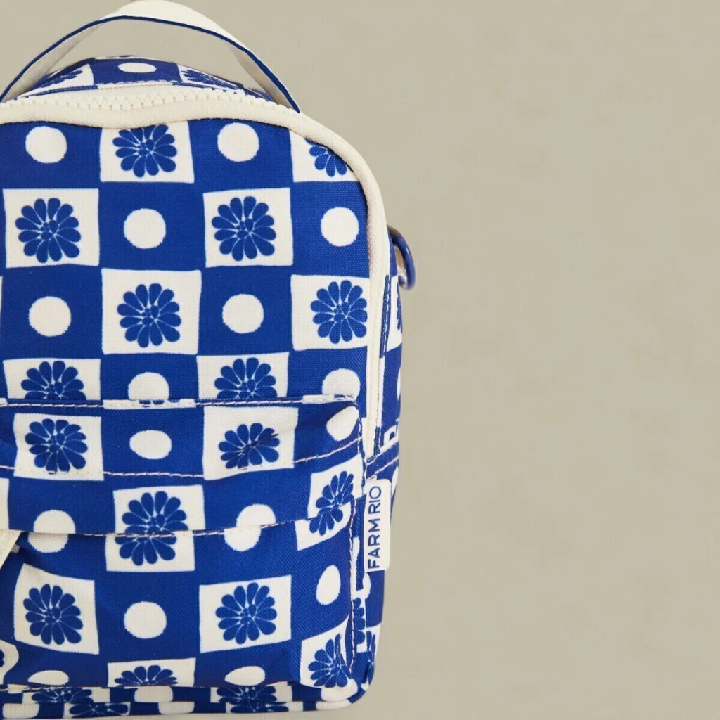 A mistura perfeita entre praticidade e personalidade! A Mochila Borogodó FARM Quadriculado Palermo é aquele acessório pequeno no tamanho, mas gigante no estilo. Com estampa geométrica azul e branca super marcante, ela traz o toque criativo e tropical da FARM Rio em cada detalhe.