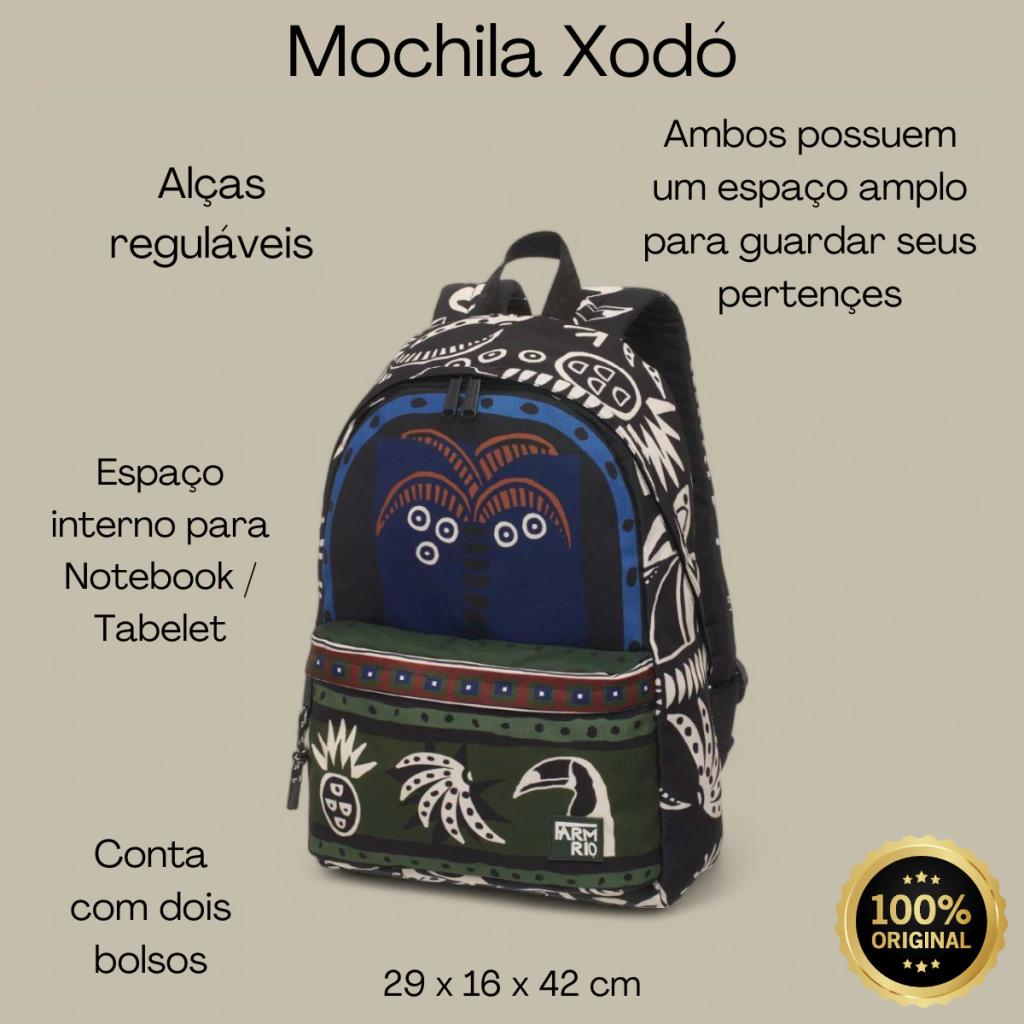 Com medidas pensadas para o seu conforto e conveniência, a Mochila Farm Xodó é a escolha perfeita para acompanhar você em todas as suas jornadas. Adicione um toque de charme e funcionalidade ao seu visual com esta adorável mochila da Farm!