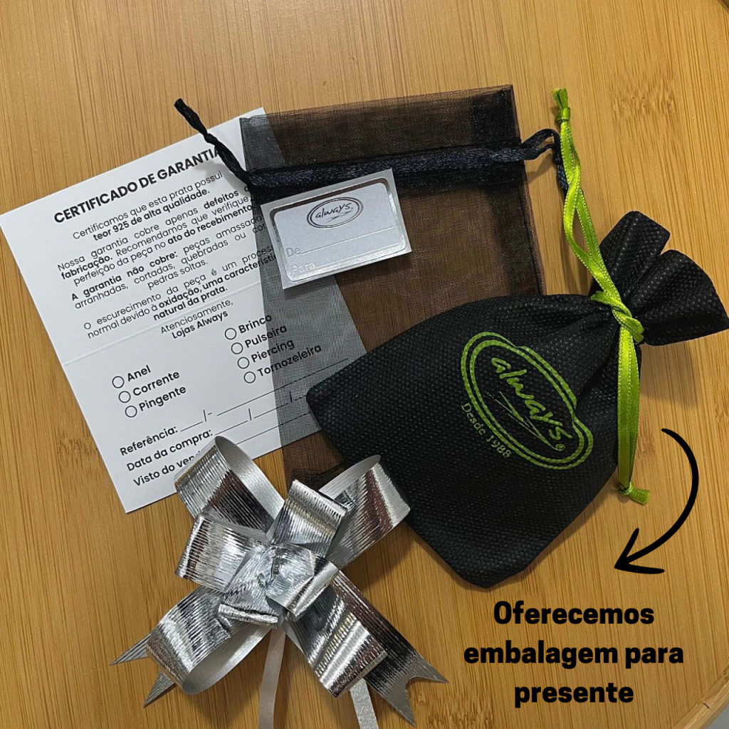 Junto da jóia, há um certificado de prata. Oferecemos garantia de 90 dias.