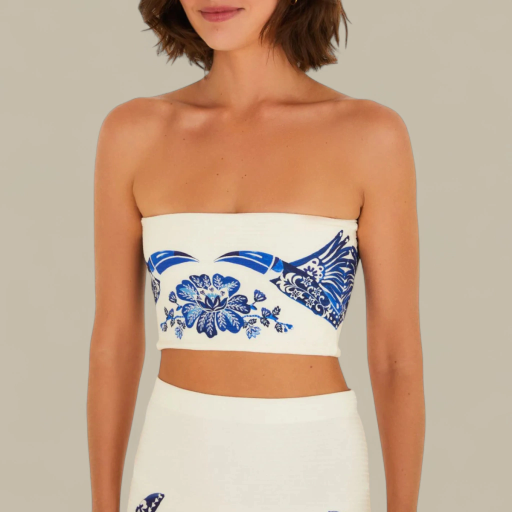 Produto: Top Tomara que Caia Farm Rio Estampado Off White e Azul