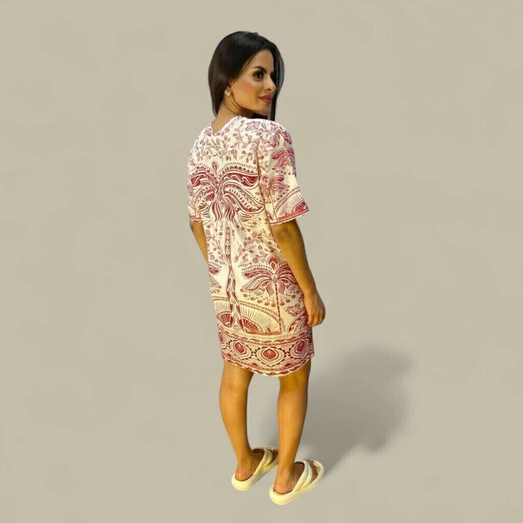 O Vestido Farm T-shirt Estampado Passeio de Rio é uma peça casual e confortável, com corte leve e soltinho, ideal para passeios diurnos. Com estampas vibrantes inspiradas na natureza, típicas da marca Farm, o modelo tem um estilo descontraído e versátil, confeccionado em tecidos frescos como algodão. Perfeito para ocasiões informais, combina bem com sandálias rasteiras ou tênis, trazendo um toque tropical e alegre ao visual.
